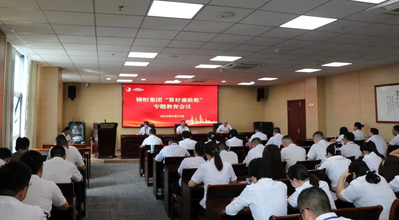 锦恒集团召开2025年“算好廉政账”专题教育会议 2025-09-22 为贯彻落实中央纪委四次全会精神和省市纪委五次全会部署,坚持从抓作风入手推进全面从严治党,完善作风建设常态化长效化机制,推动形成清正廉洁、风清气正的社会风尚,9月22日上午,锦恒集团组织召开2025年“算好廉政账”专题教育会议。集团党委书记、董事长王必东要求全体党员干部必须牢牢坚守纪律和规矩底线,全面塑造忠诚、干净、担当的干部队伍形象。会议由集团党委副书记、纪委书记、监事会主席、人武部教导员刘歆荃主持,集团领导班子、中层及以上人员参加会议。 会上,王必东为全体党员干部上专题廉政党课,他围绕四个方面进行了阐述:一是充分认识当前廉政建设的形势,以高标准、严要求做好相关工作;二是养成公私分明的良好思维习惯,打破不平衡心理,去除卖人情心理;三是警惕干部队伍违纪违法问题日益突出,深刻吸取教训;四是坚持“一岗双责”,以上率下,保持敬畏之心、感恩之心,珍惜当下。 现场组织集中观看了教育片《风范》,引导党员干部深刻反思、反躬自省,强化党性教育,增强党员干部守党纪、正作风的主动性,确保党纪严明和党风清正。 集团党委委员、董事会秘书张亦舒宣贯《锦恒集团2025年“算好廉政账”专题教育月活动通知》,在集团持续深入开展“五个一”活动,推动“同算廉政账 共树好作风”深入人心,见行见效。 会后,组织大家前往县烈士陵园(革命纪念馆)观看“壮丽史诗——南通地区抗日战争史”专题展,通过实地参观学习,使党员干部深刻感悟革命历史,缅怀革命先烈的丰功伟绩,进一步强化廉洁自律意识和爱国情怀。